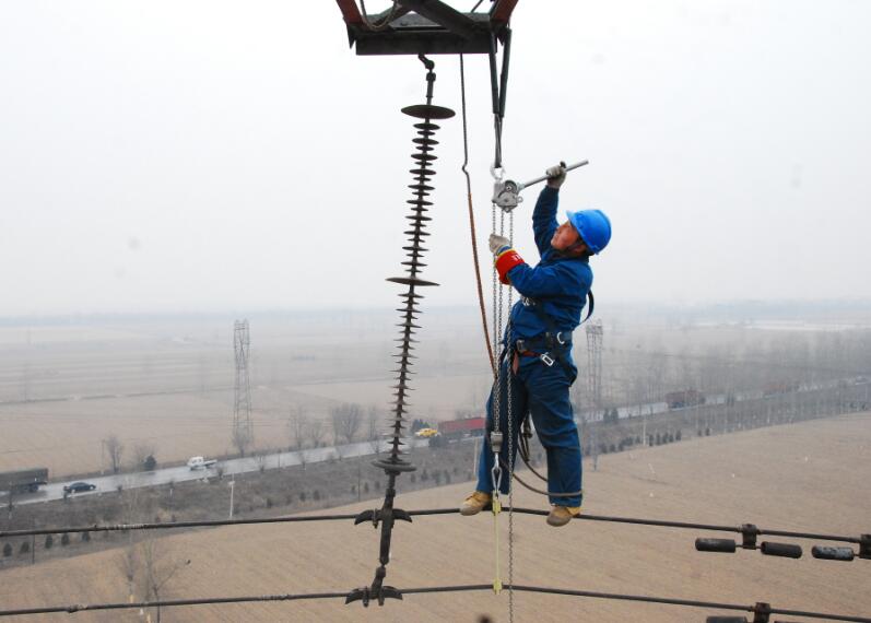 國網慶陽電工利用鋁合金緊線器等工具搶修線路...